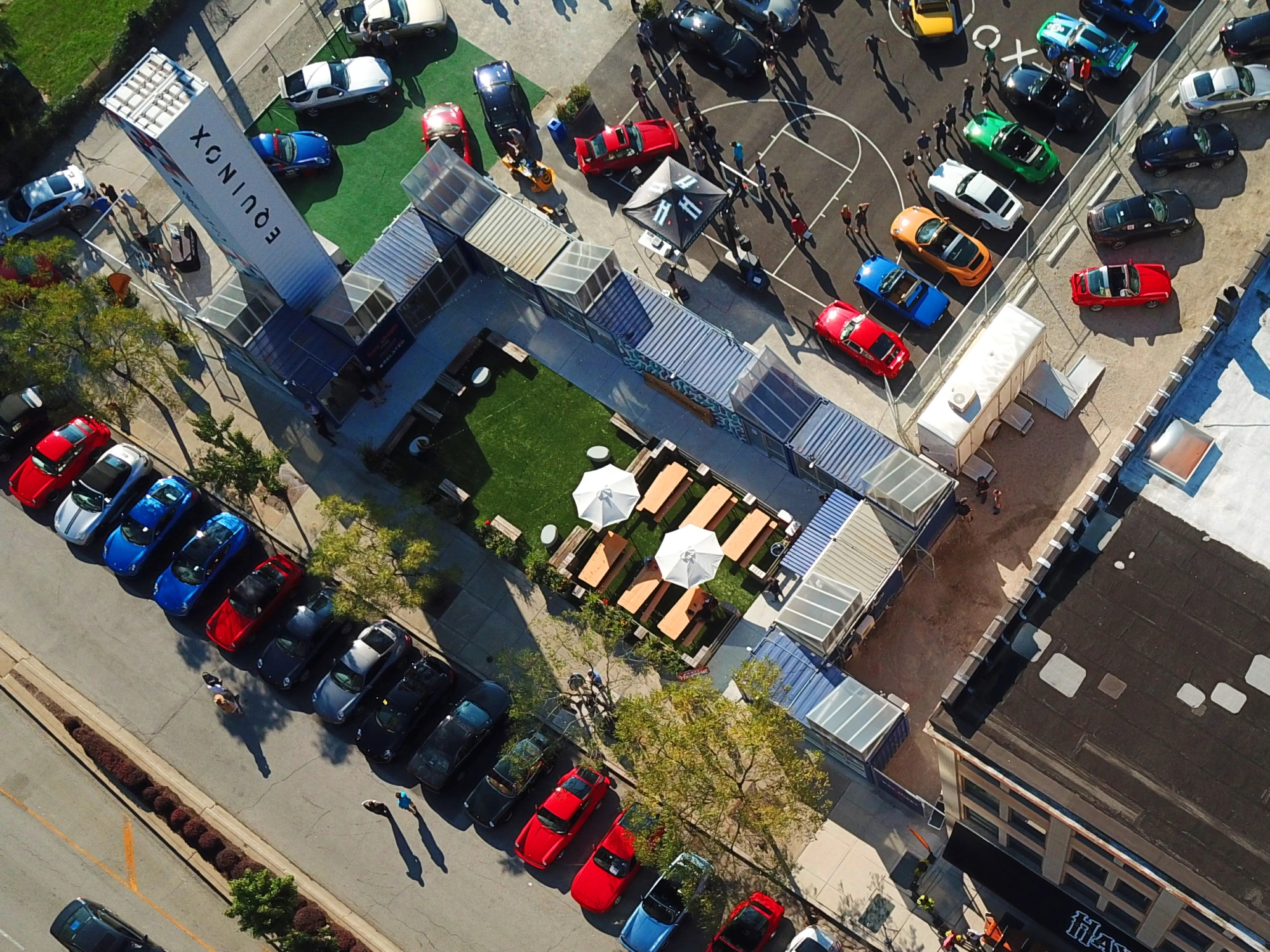 Located at the east end of Restaurant Row on the corner of Randolph and Halsted, near the Kennedy expressway, which includes restaurants owned and operated by world-renowned chefs, such as Stephanie Izard’s Girl & The Goat and Rick Bayless’s Cruz Blanca and Leña Brava. Haymarket Pub and Brewery, a restaurant and brewery next to the site, partnered with Box Shops to service our beer garden in the market.