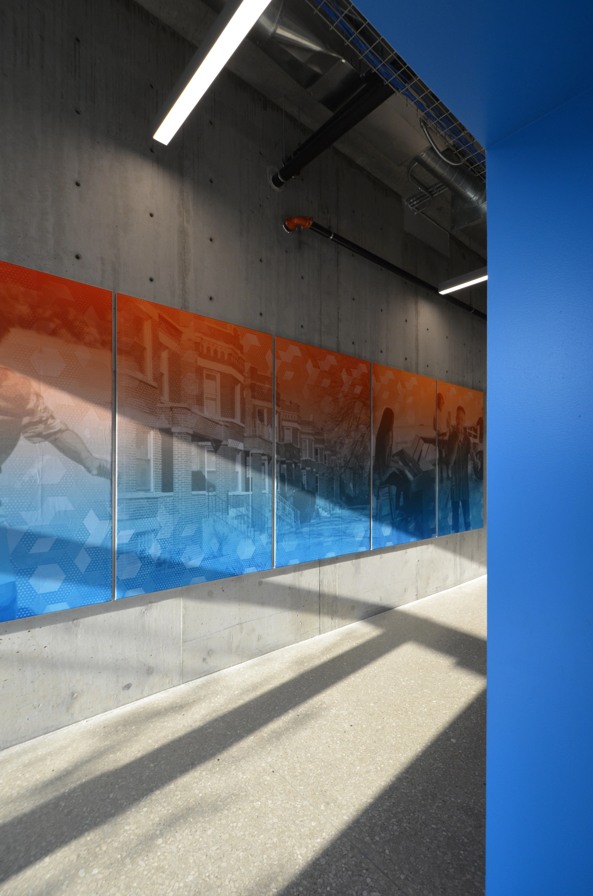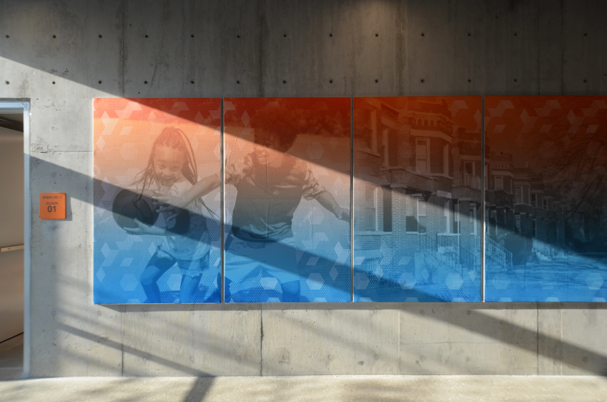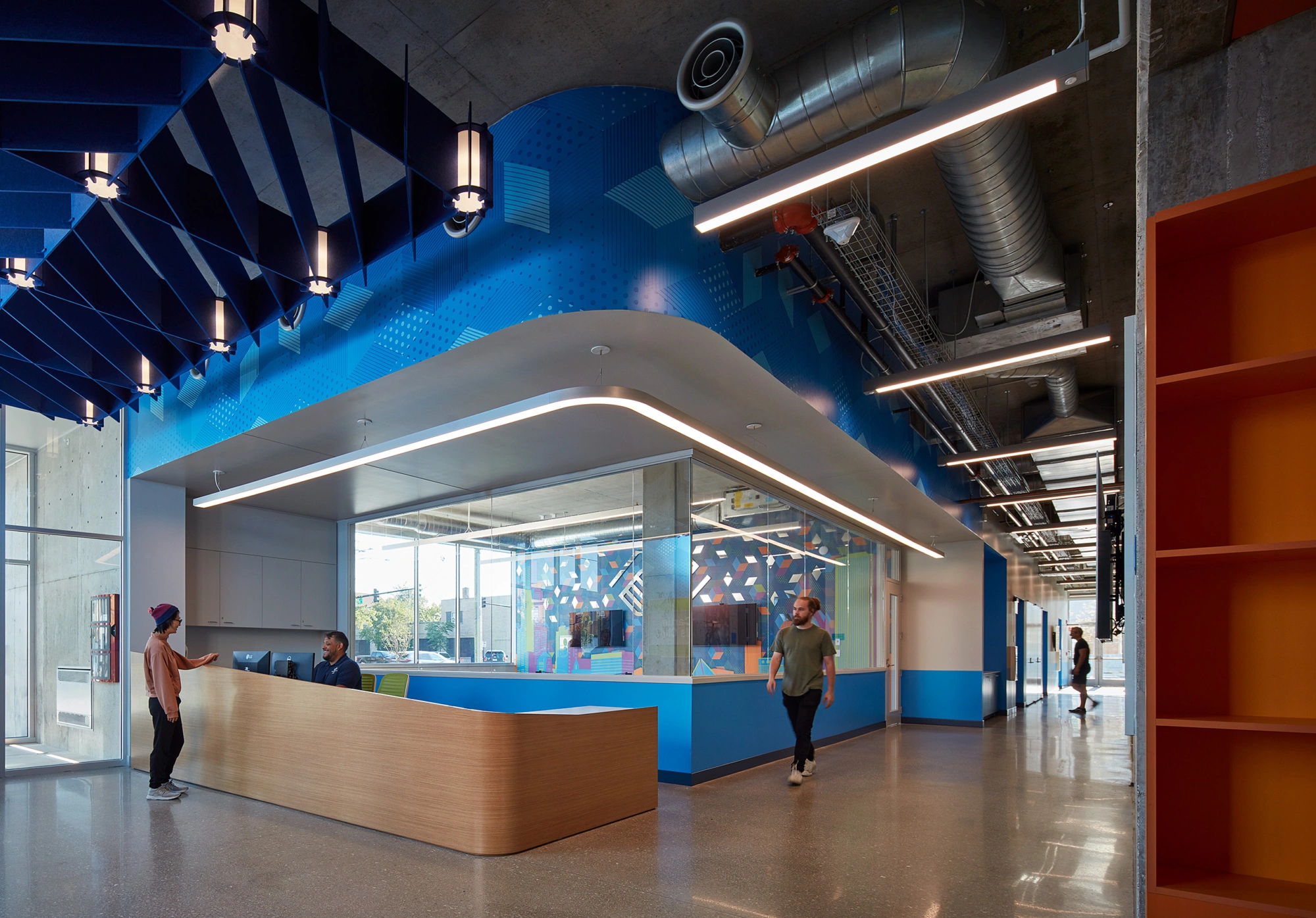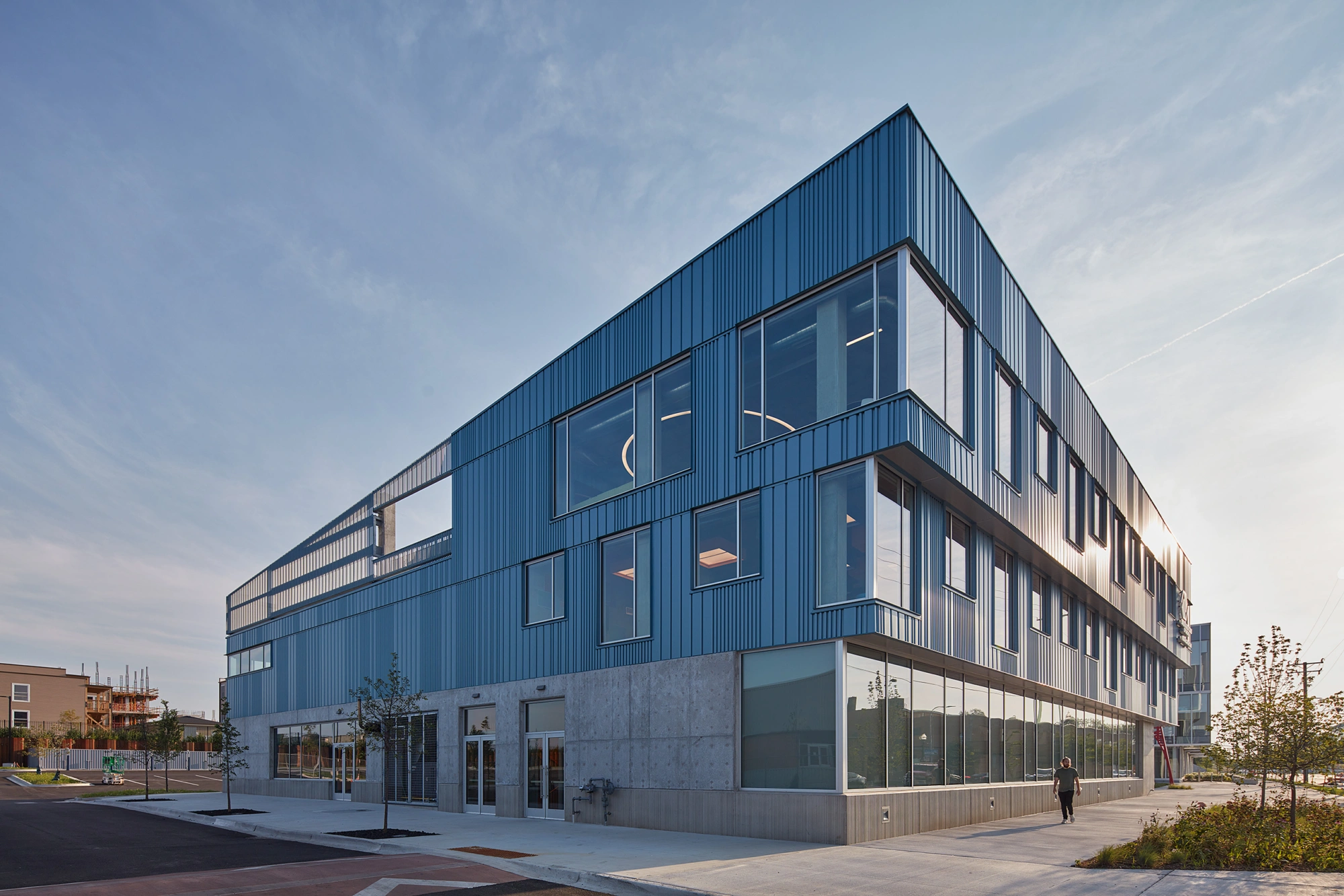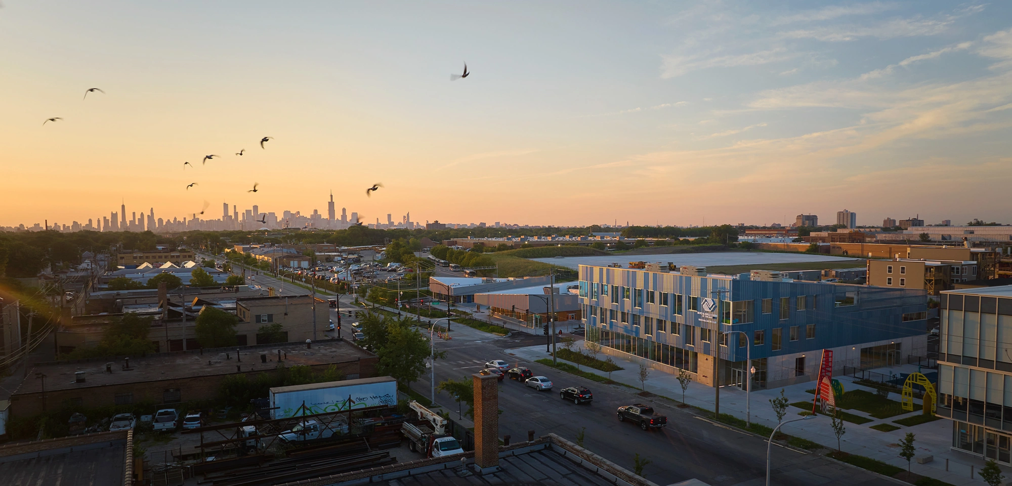 The new Rusu-McCartin Club is the first new construction Boys and Girls Club in nearly 50 years and will anchor the Joint Public Safety Campus in the Austin neighborhood on the West Side of Chicago. The 3-story building provides facilities for local youth to engage in a broad offering of programs that promote leadership development, academic success, and healthy lifestyles. The building activates Chicago Avenue with large expanses of glass to showcase the various creative programming across three stepped floors. The front of the building is angled to create a landscaped east to west pathway across the campus and reveal skyline views from the entry and public plaza. On top of the double height gymnasium sits an outdoor deck adjacent to a growing meadow and a large flexible classroom space. The exterior skin of the building is comprised of a variable pattern of three metal profiles with metallic paint finishes to capture sun and shadows throughout the day.