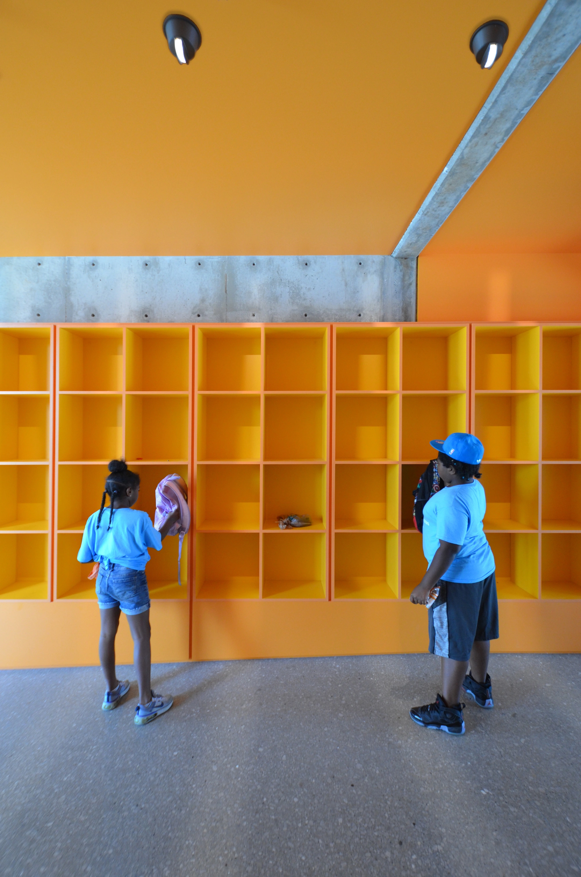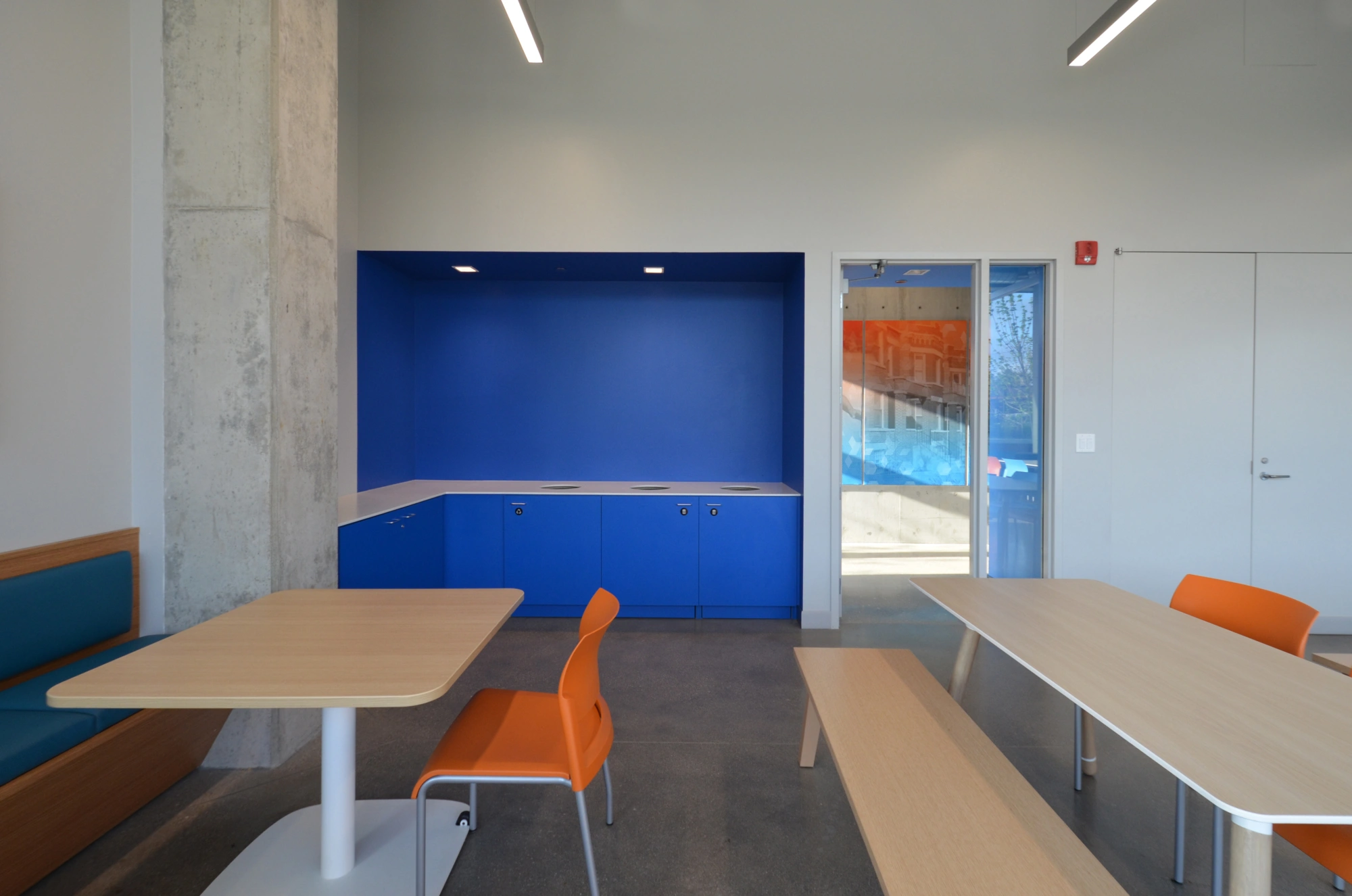 Entry Sequence to Cubbies + Gym, Game Room, Teaching Kitchen + Dining