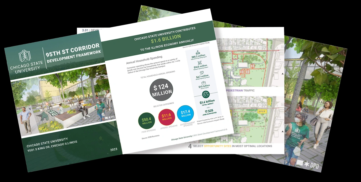 Chicago State University (CSU) and the City of Chicago Department of Planning (DPD) entered a partnership to study 95th street and future development of the corridor. The goal of the study is to leverage the presence of the university to drive investment and economic development along 95th Street through community engagement and urban design.