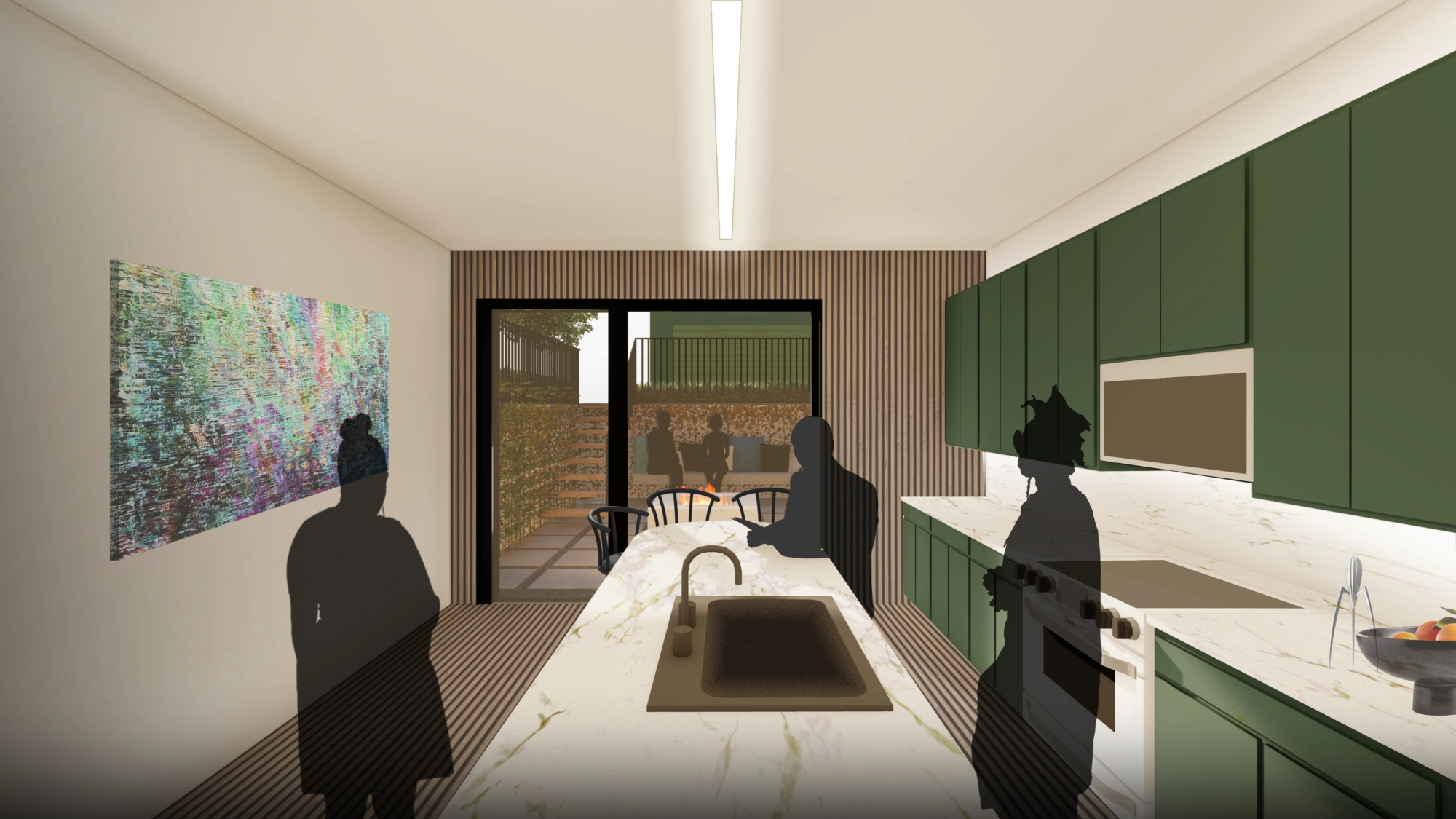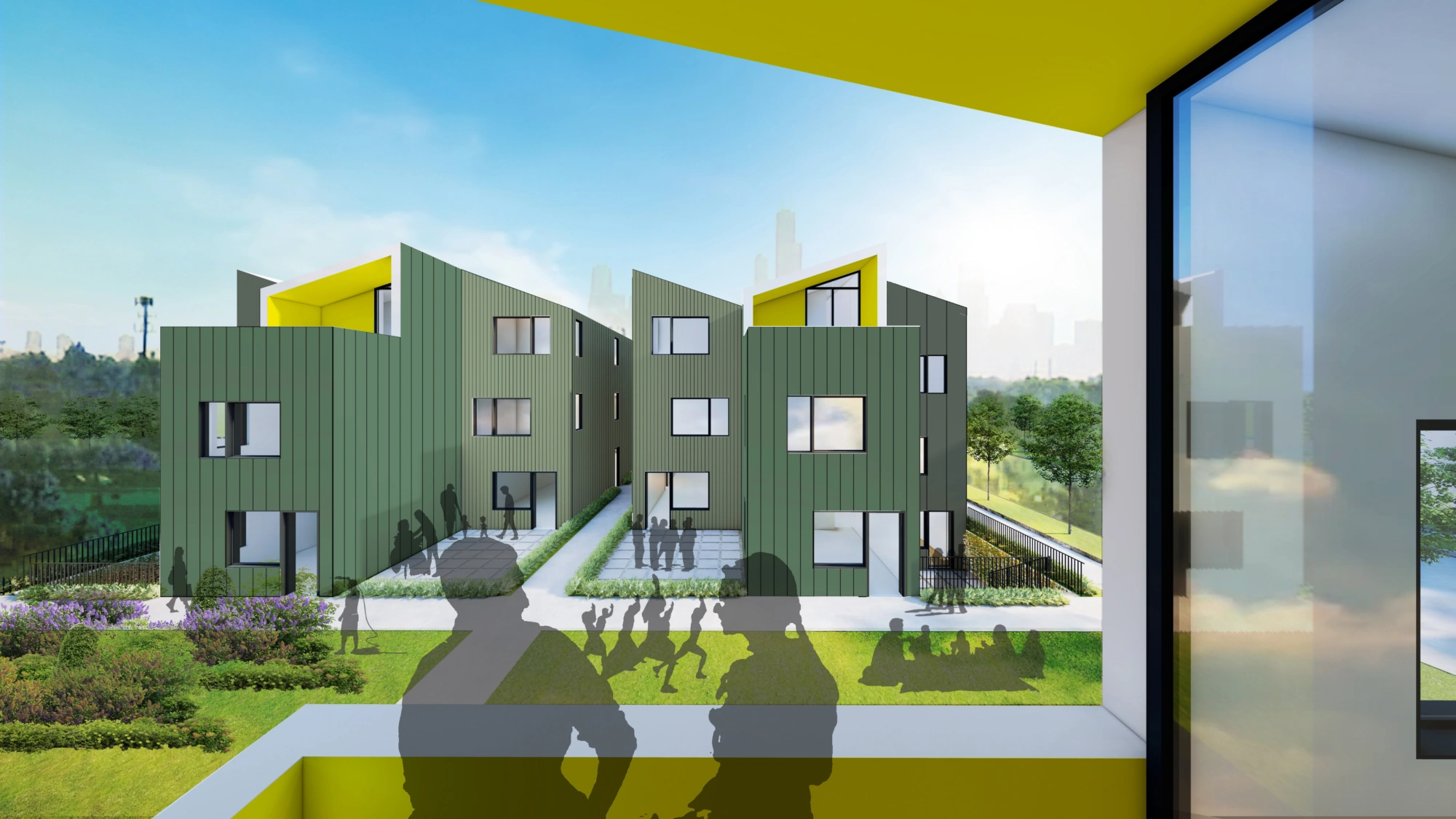 The best stories of a neighborhood come from the people that have lived on the block for generations. They know the trees, give the local, gossip, and understand the politics of place. Increasingly, the opportunity to live in Chicago and thrive in place with chosen family and friends is unavailable. Generation Next is a rowhome concept that imagines a future of shared wealth and space using three unique dwelling types: split level rowhomes, aging in place rowhomes, and coach house ADUs. Each home offers a unique type of private outdoor space raging from roof decks, sunken courts or at grade patios. This frees the remainder of the rear yard for shared community use that can expand over time.