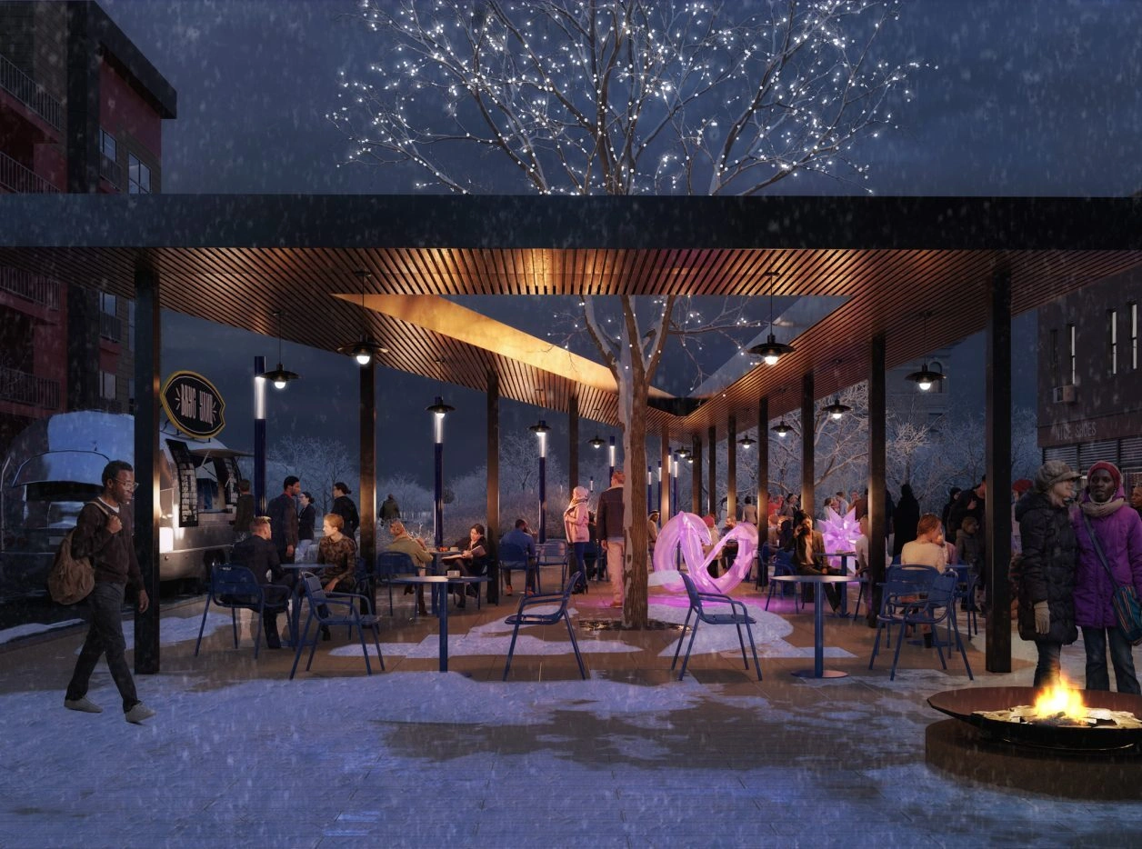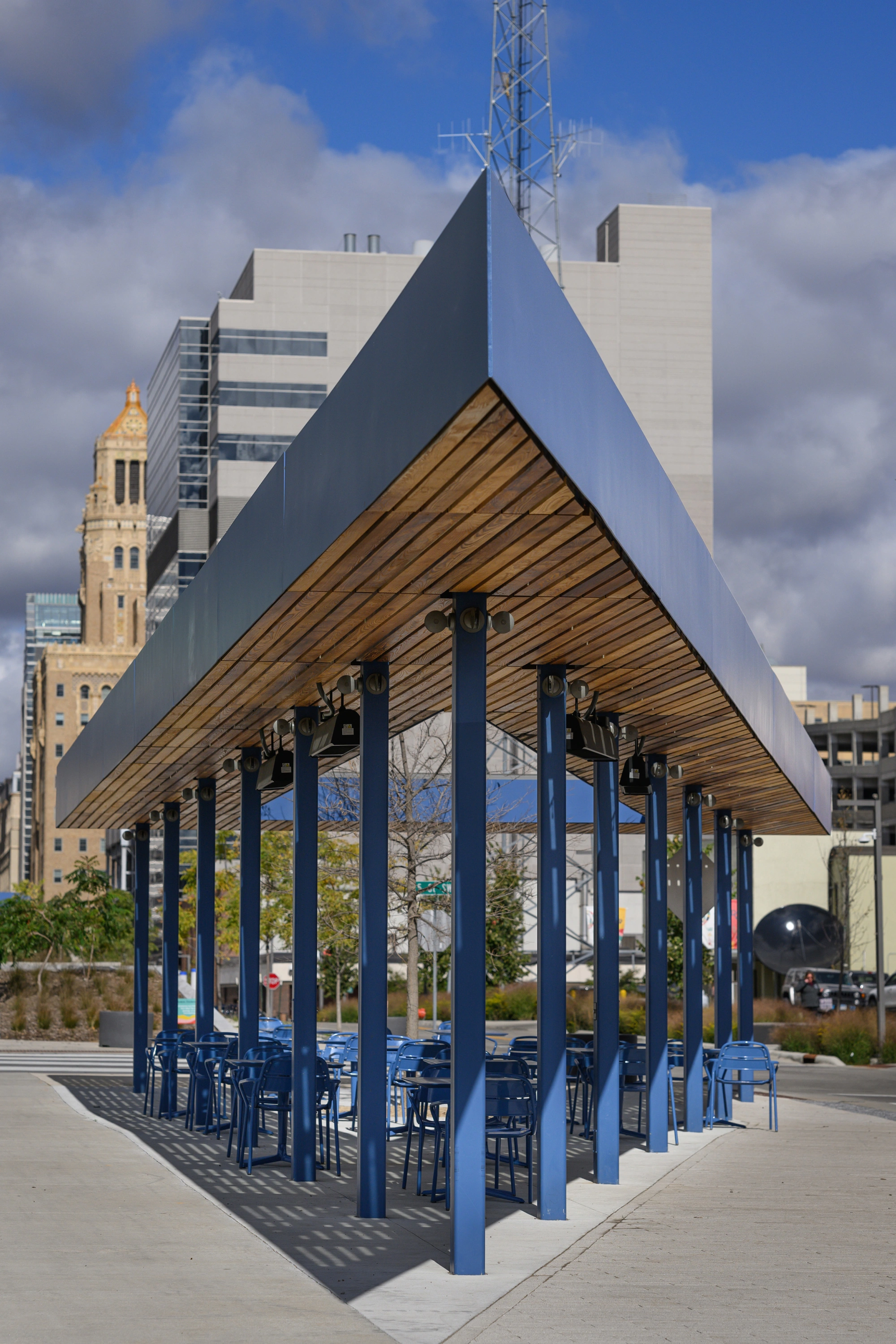 Latent Design continues to work with a team led by Coen + Partners to design unique pavilions, seating, and curated art elements throughout the corridor. Design elements of the plaza occupy a space only slightly larger than a typical Chicago lot and show the possibility of transforming small spaces for a multiplicity of uses.