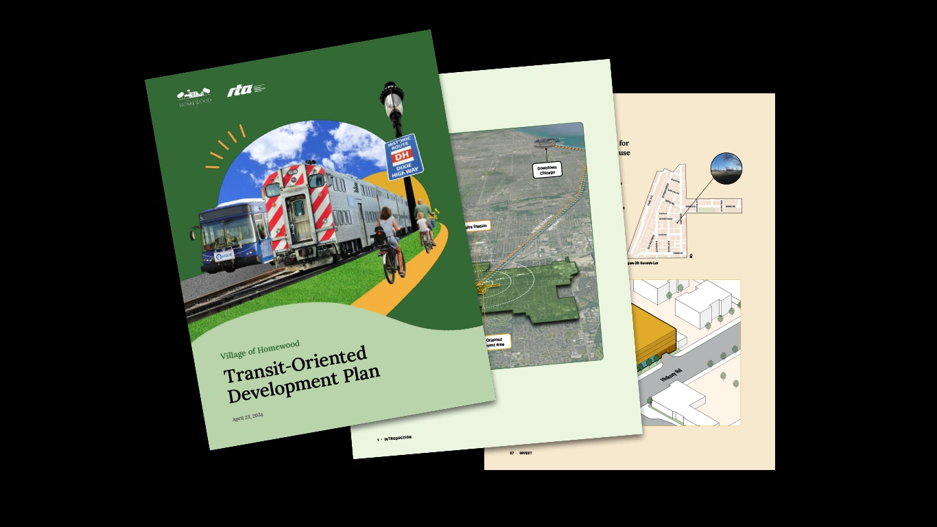 The Village of Homewood Transit-Oriented Development Plan, funded by the Regional Transportation Authority, puts forth a vision for a revitalized downtown Homewood. With a $14.5 million renovation of the Homewood Metra station underway, the TOD plan comes at an opportune time to engage residents and reimagine downtown Homewood. Homewood’s rich history and neighborhood charm is attracting private and public investment, some already underway.