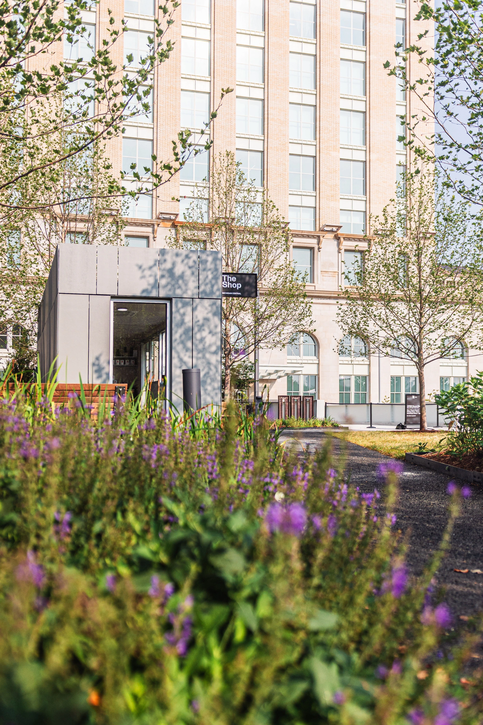 Latent designed The Shop, a retail container to sell Station merch for the crowds of more than 60,000 people that participated in the reopening festivities. OPEN celebrations continue through the end of summer, when The Station welcomes new tenants to the ground floor. Latent also designed the forthcoming Biophilic Retail space as part of the Early Activations projects.