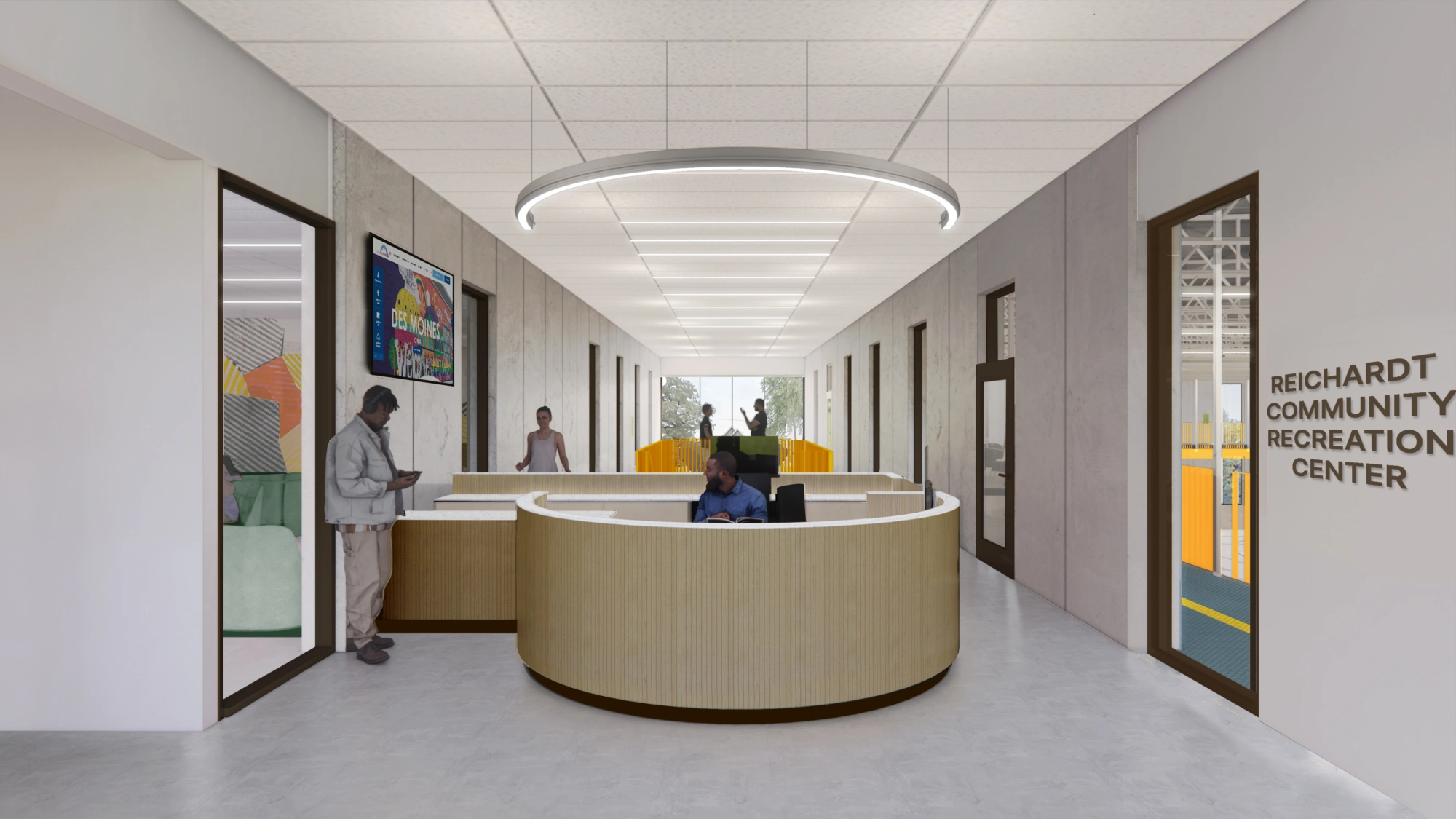 The Reichardt (North Side) Community Recreation Center aims to provide an inviting, secure, and environmentally sustainable environment that fosters community development, social gatherings, and intergenerational connections. The project prioritized community engagement, demonstrating this commitment through the organization of more than 20 public meetings during the planning and design phases. The new center will feature a variety of amenities designed to support a wide range of recreational and community activities including an indoor swimming pool, a gymnasium, fitness studios, community rooms, an idea lab, locker rooms, among other facilities.